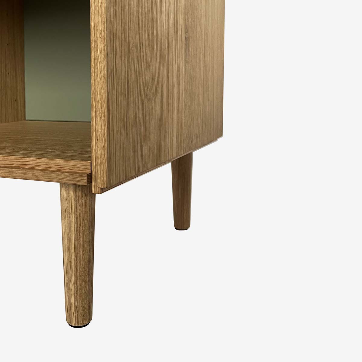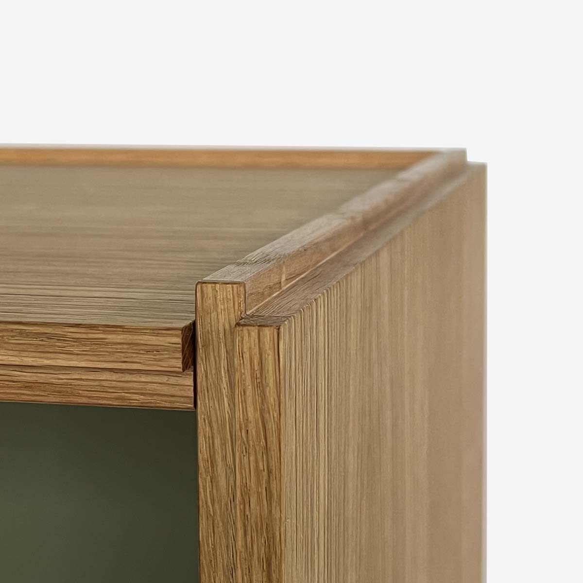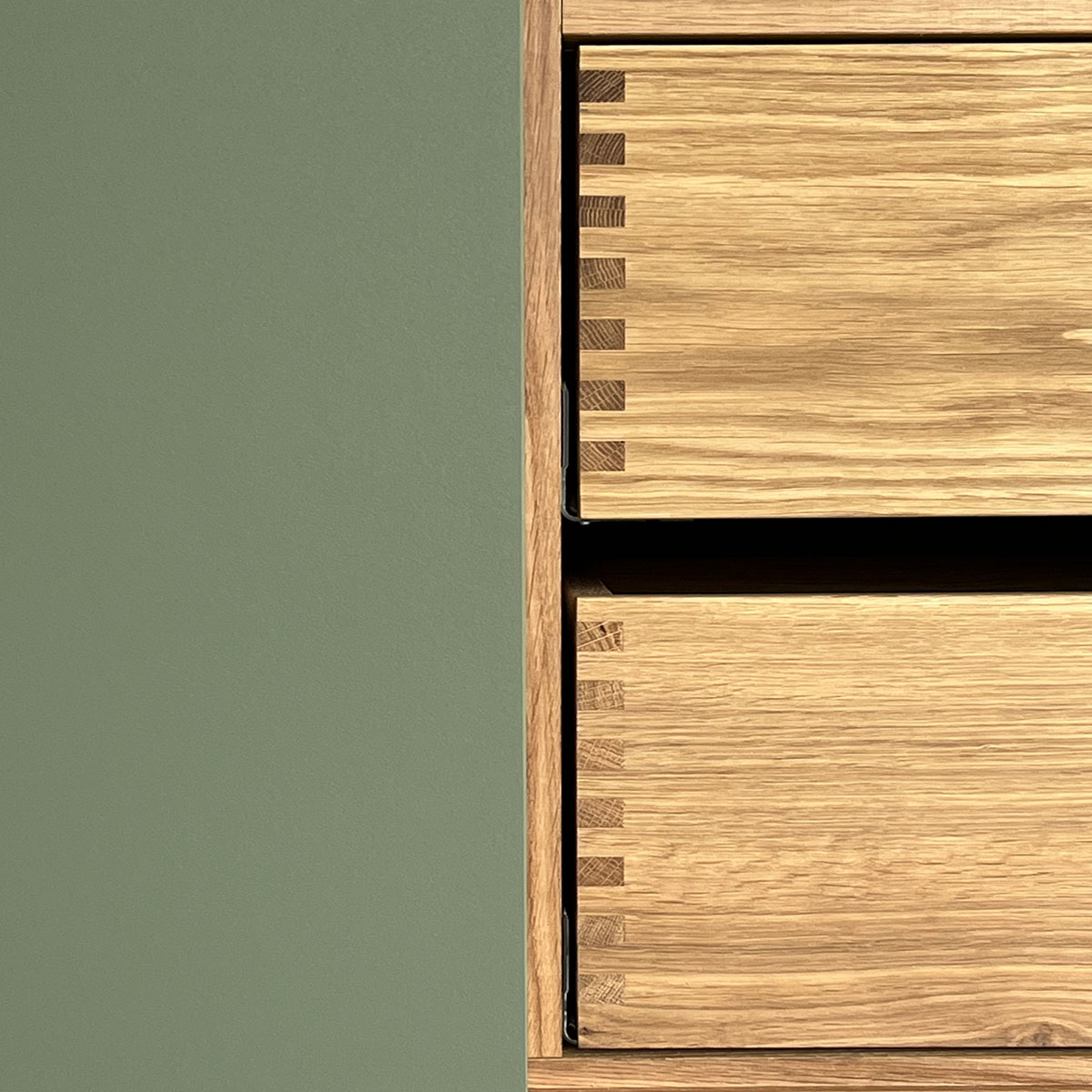 Tilvælg, fingertappede skuffer i massivt egetræ.