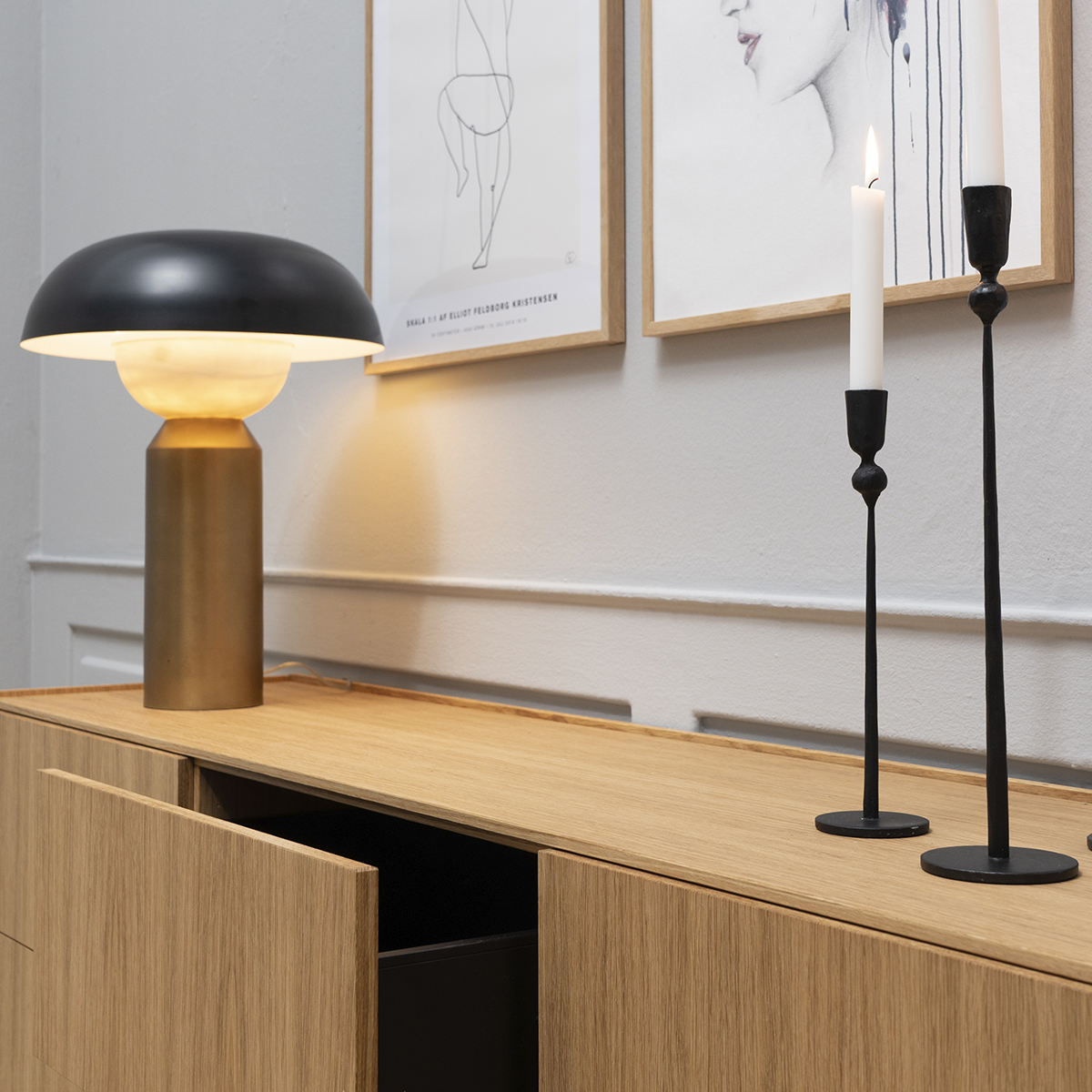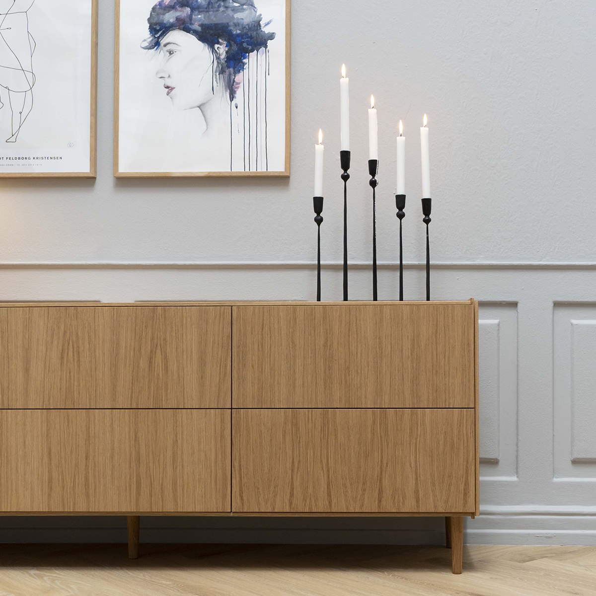 Skænk med skuffer i eg