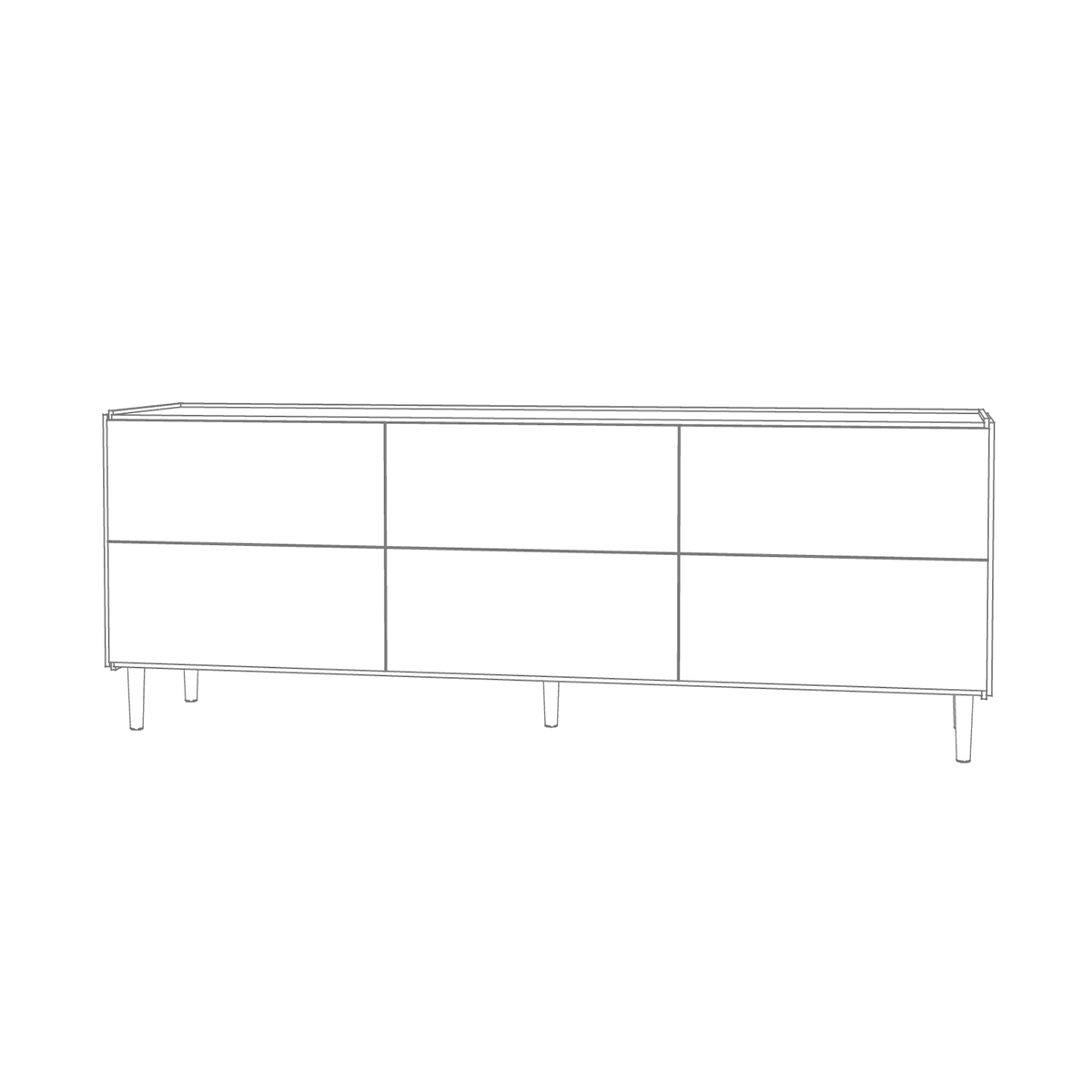 Bredde: 181,9 cm – Højde: 52,7 cm (inkl. ben 67 cm) – Dybde: 42 cm.