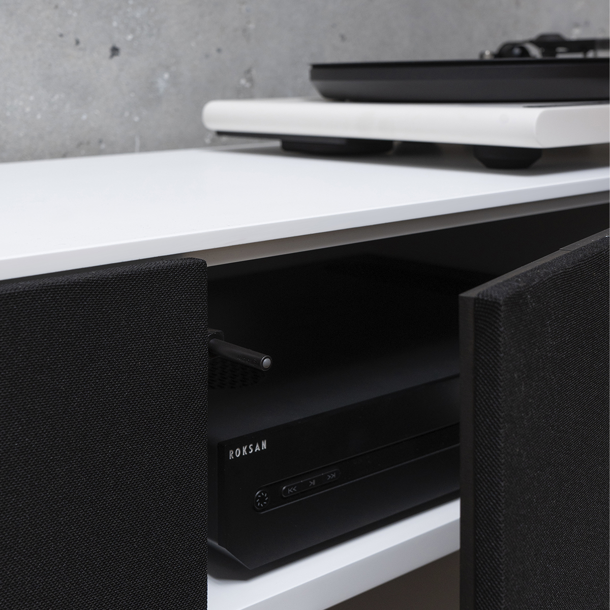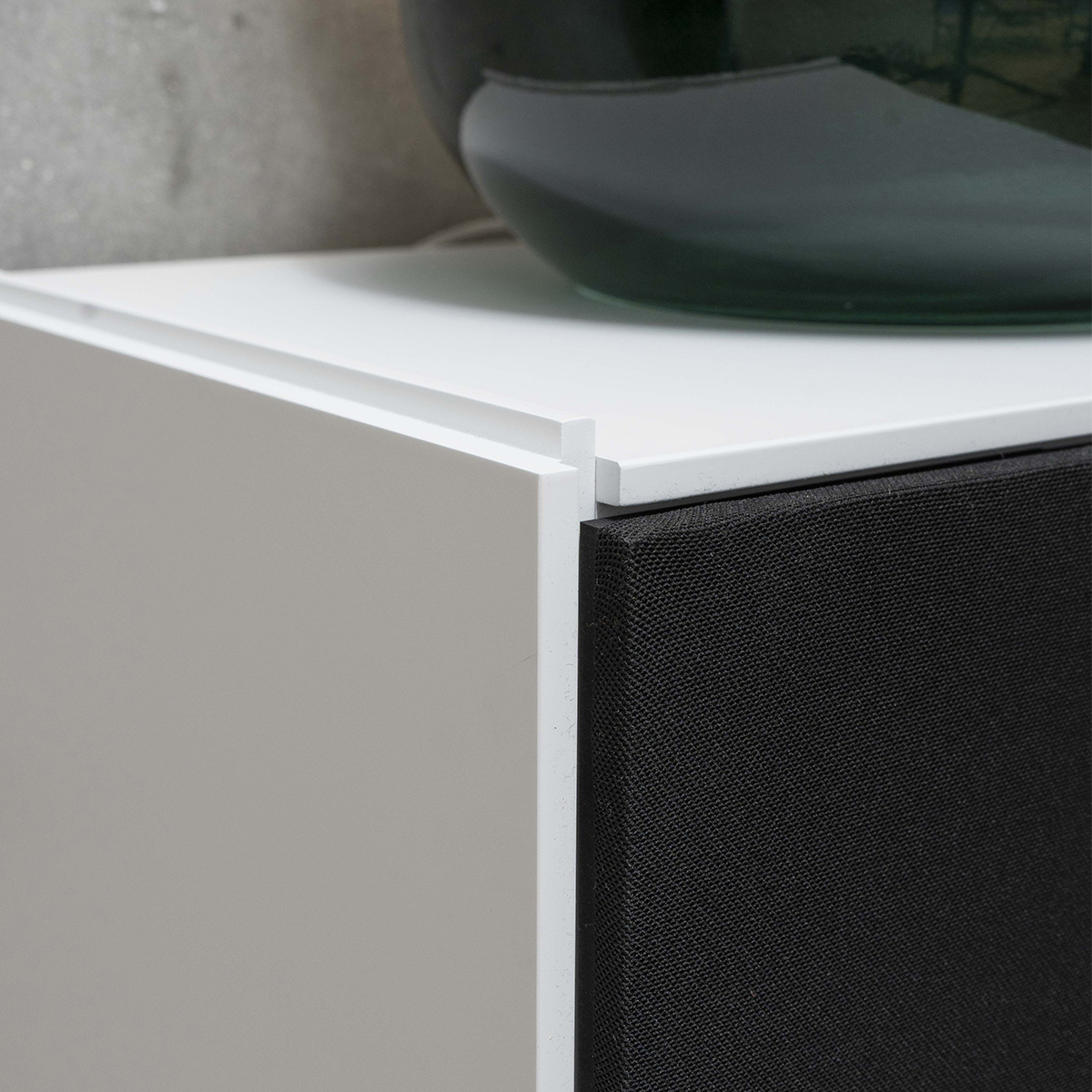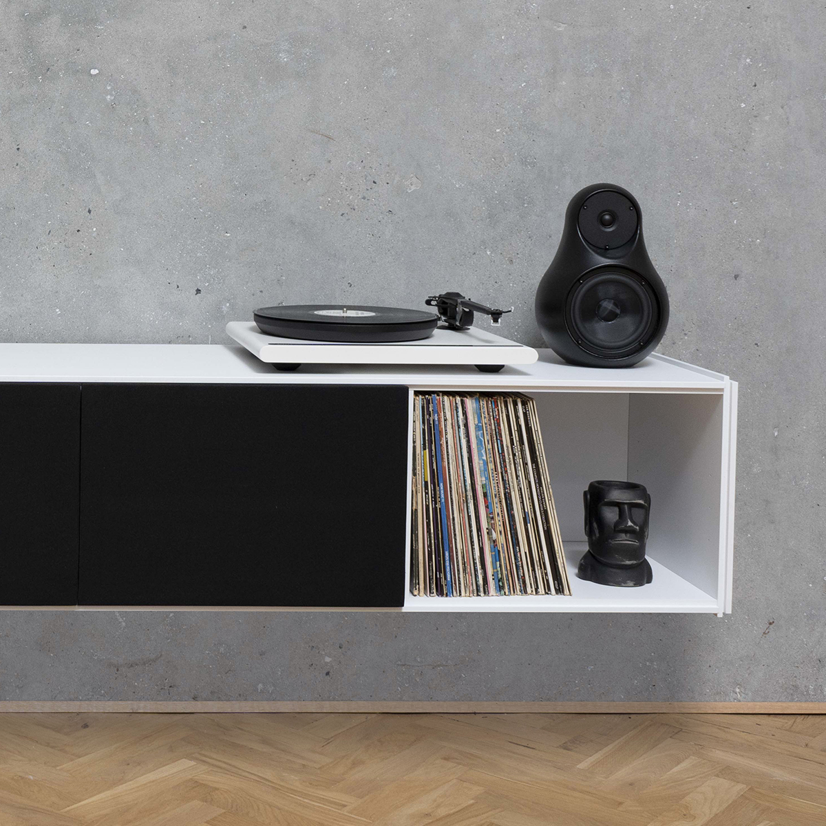 Tv-møbel i hvid mat lak bestående af fire sektion.